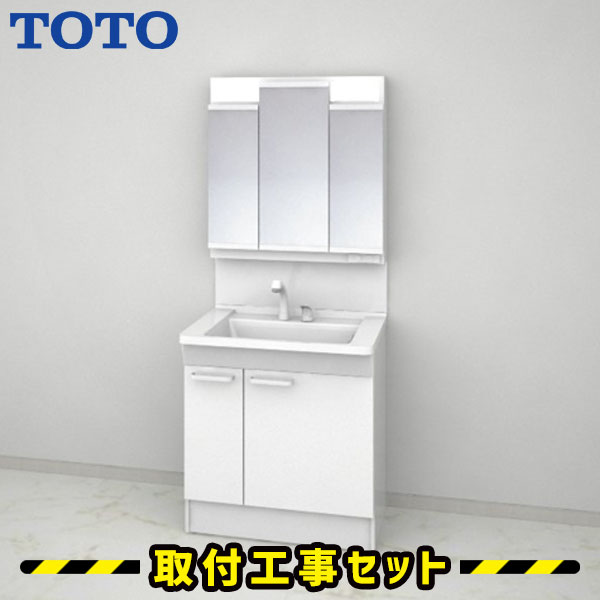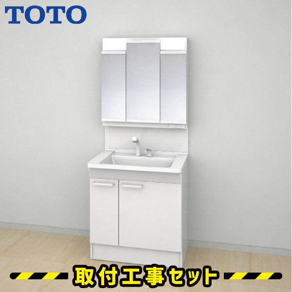 洗面化粧台【工事費込】TOTO 洗面台 750 Vシリーズ 三面鏡 片引き出しタイプ LED 洗面台 蛇口 シャワー 洗面所 リフォーム 工事費込み 取替 洗面台 交換 取付 工事 混合水栓 LDPB075BJGEN1A-LMPB075A3GDC1G